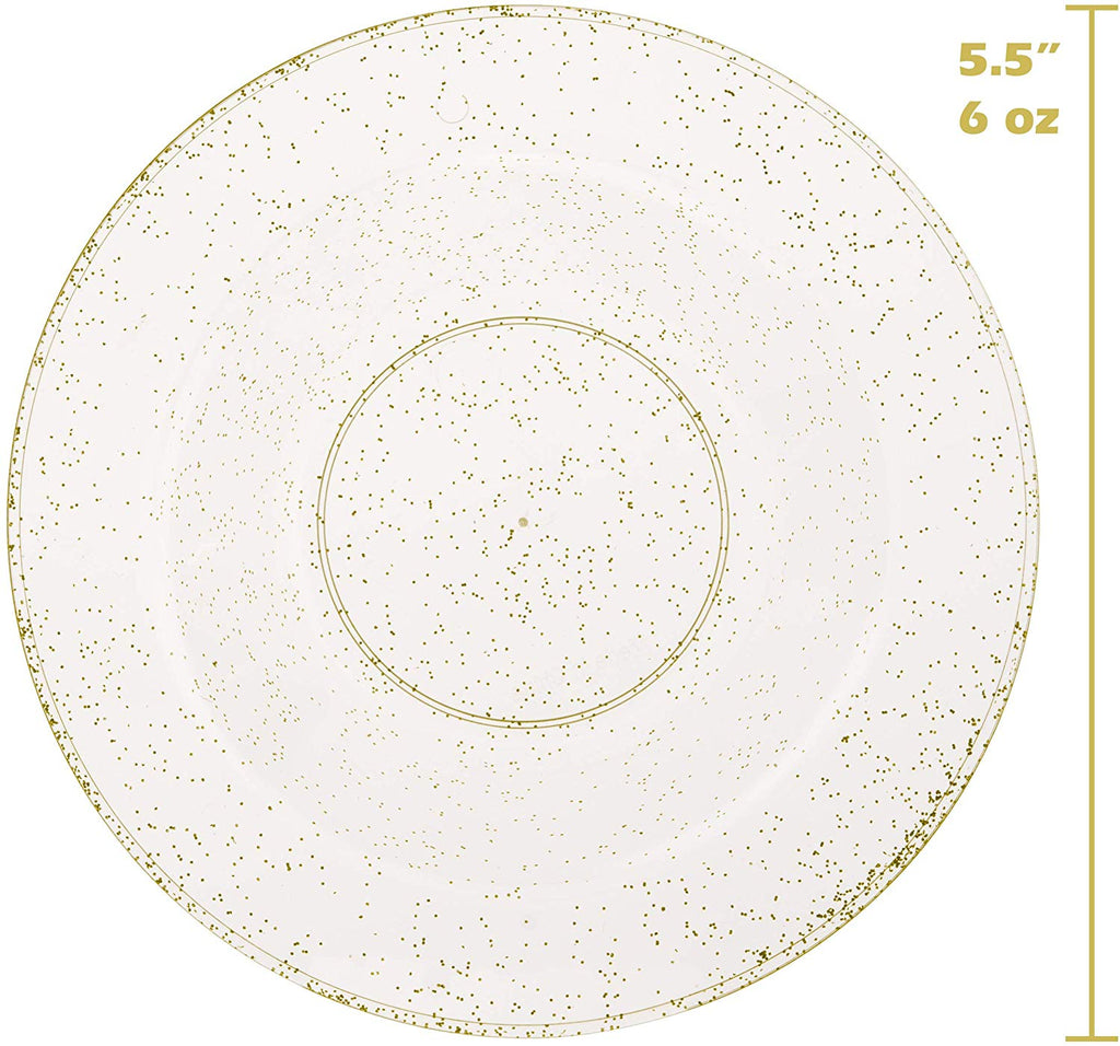 BloominGoods - Disposable Plastic plates, Clear with GOLD Glitter - 6-Ounce Dessert Bowls (50-pack)