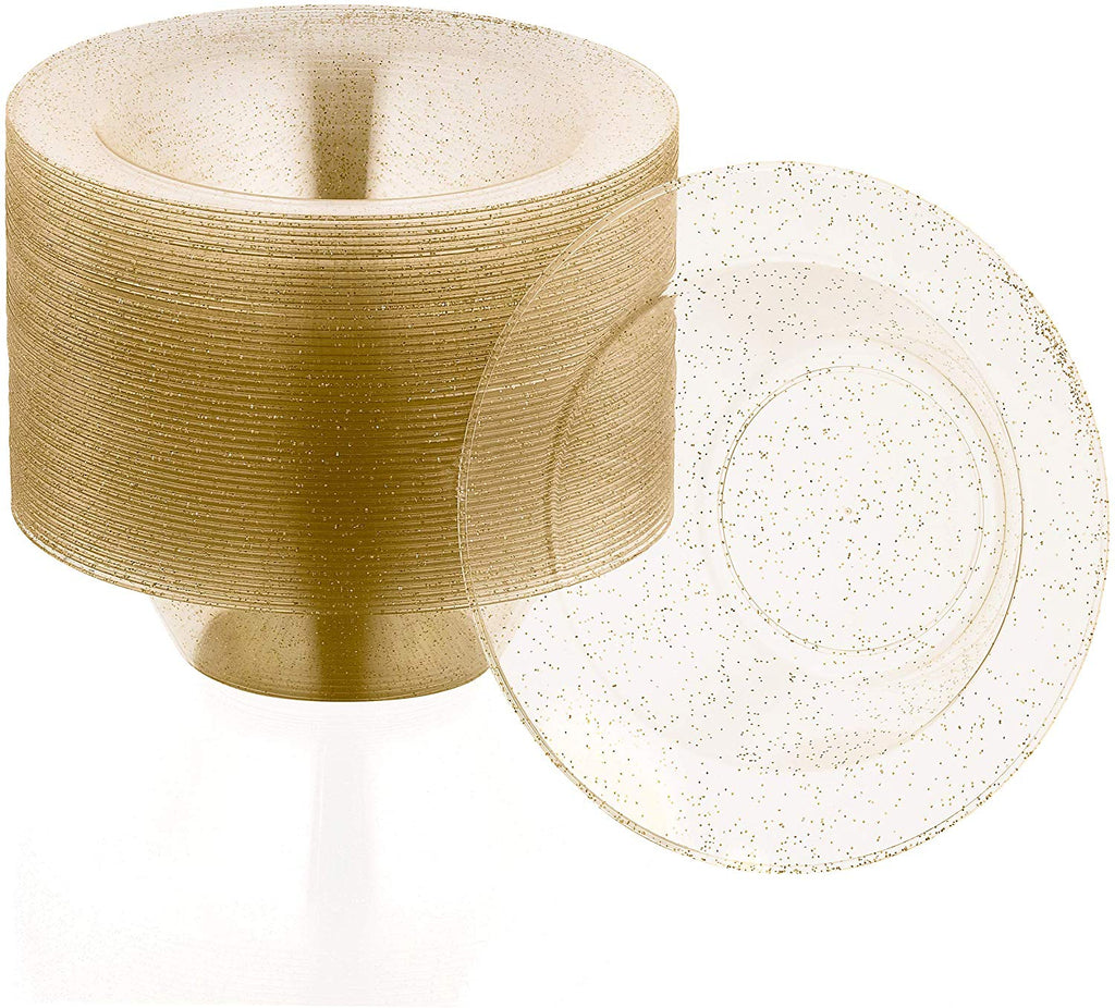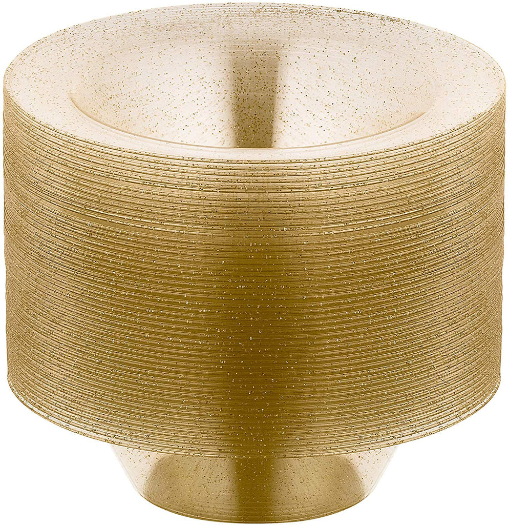 BloominGoods - Disposable Plastic plates, Clear with GOLD Glitter - 6-Ounce Dessert Bowls (50-pack) HIGH-QUALITY CONSTRUCTION. BloominGoods’ Gold Glitter Dessert Bowls are expertly crafted using heavy ...