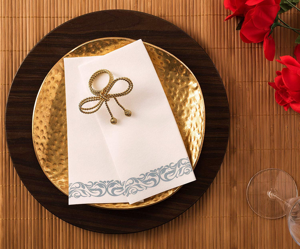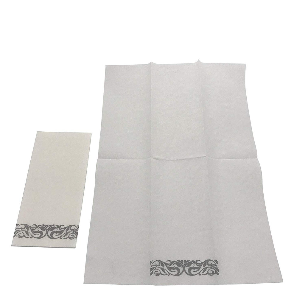 Bloomingoods Disposable Linen-Feel Guest Towels - Decorative White Hand Towels, Silver Floral Cloth-Like Paper Napkins - Case of 1000 (Bulk Packaging)
