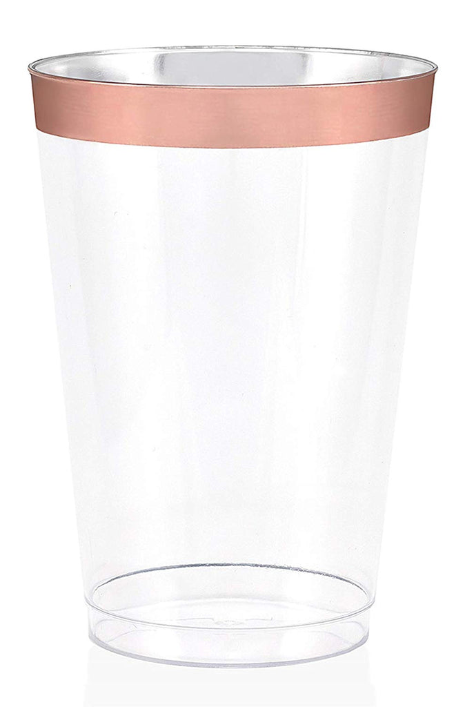 50 Rose Gold Rimmed Clear Hard Plastic Cups | 16 oz. Fancy Disposable Wedding Tumblers for Party & Wedding (50-Pack)