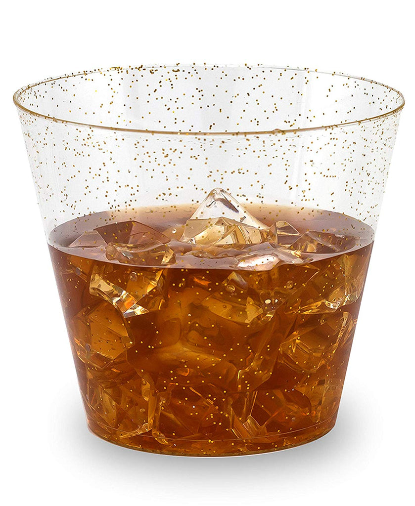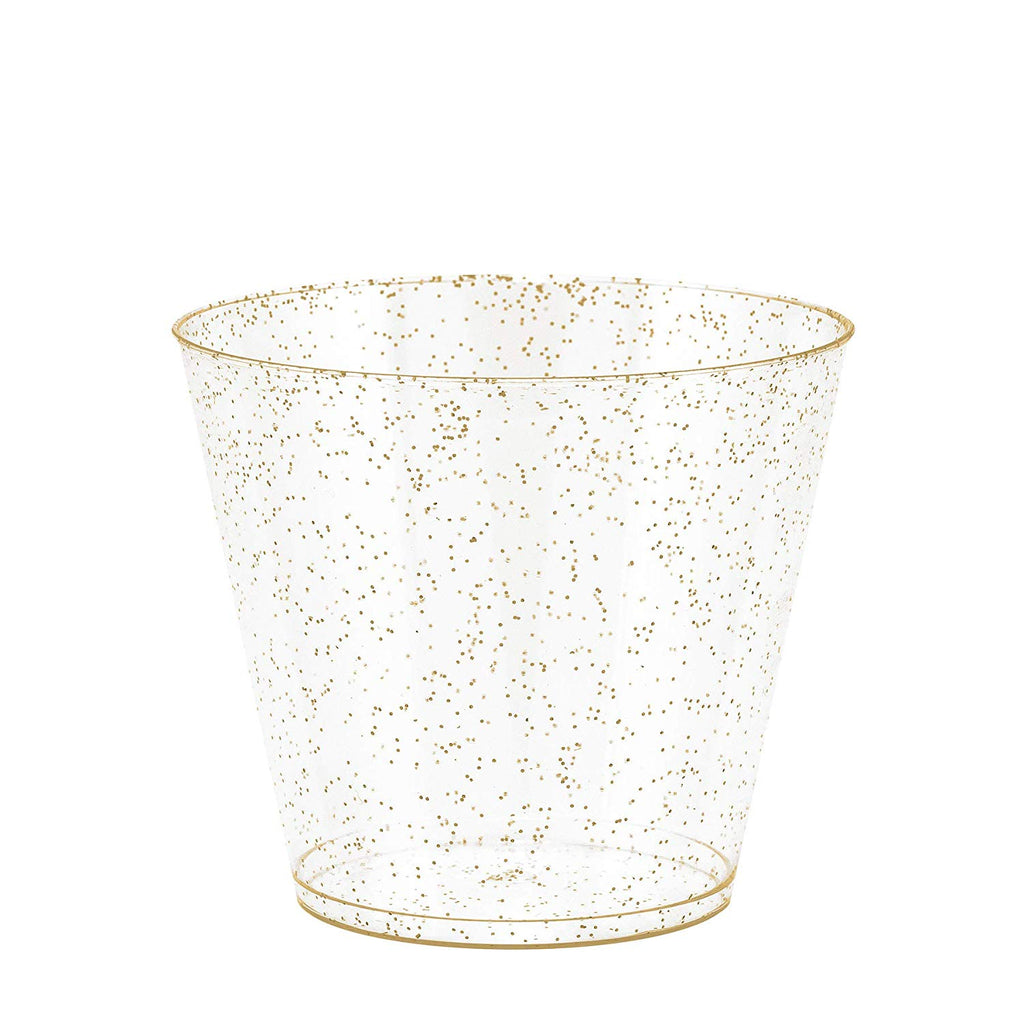 100 Gold Glitter Clear Hard Plastic Cups | 9 oz. Fancy Disposable Tumblers (100-Pack) by Bloomingoods