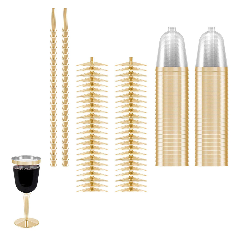• ELEGANT AND PRACTICAL: When party planning, we know how important it is for disposable tableware to be both tasteful and convenient. BloominGoods’ Disposable Party Tableware line brings you these Gold decorative wine glasses, for all kinds of upscale functions. Our fine stemmed wine glasses are designed to be sturdy enough to resist breakage while remaining beautiful enough to impress your guests.