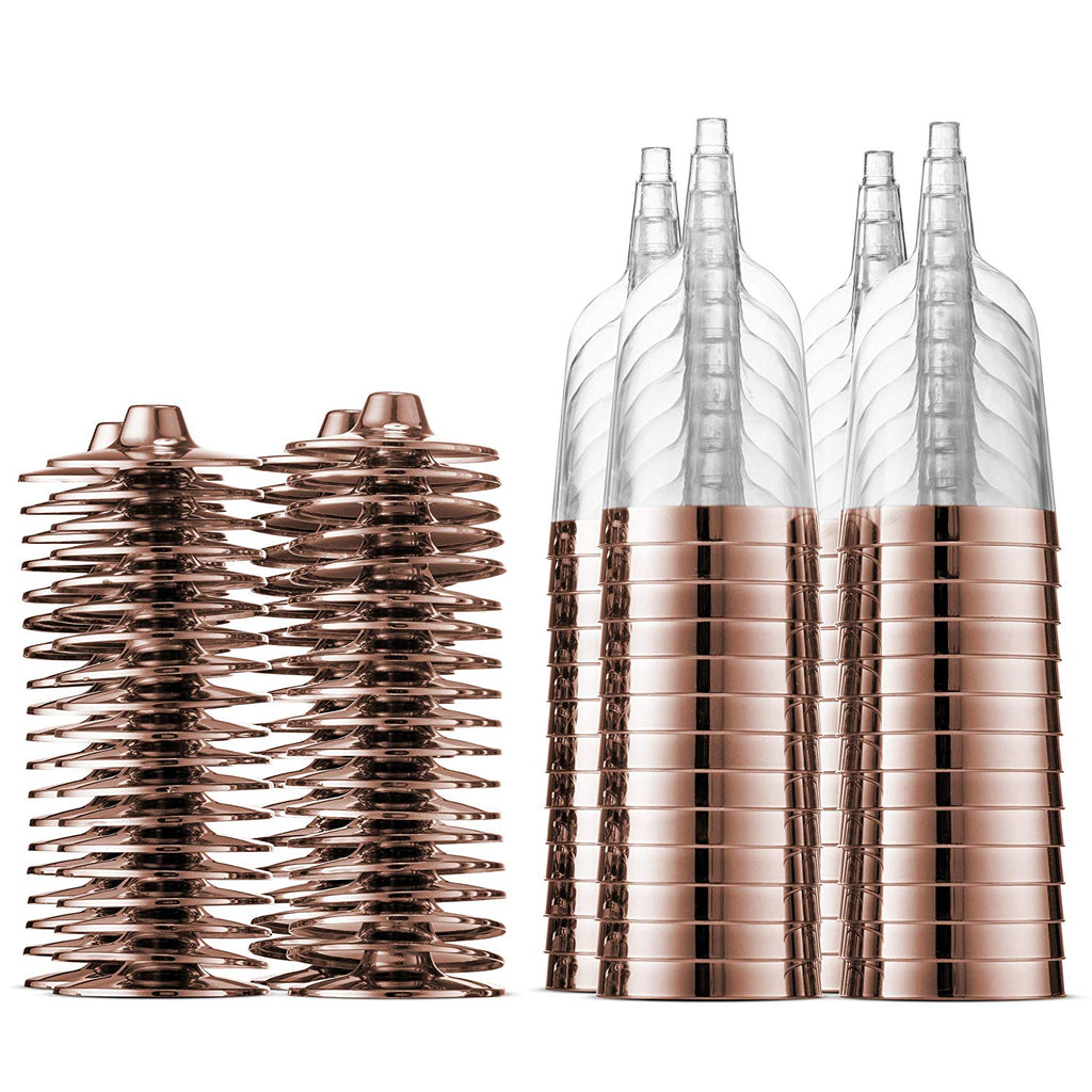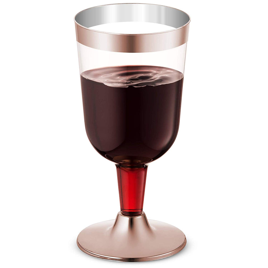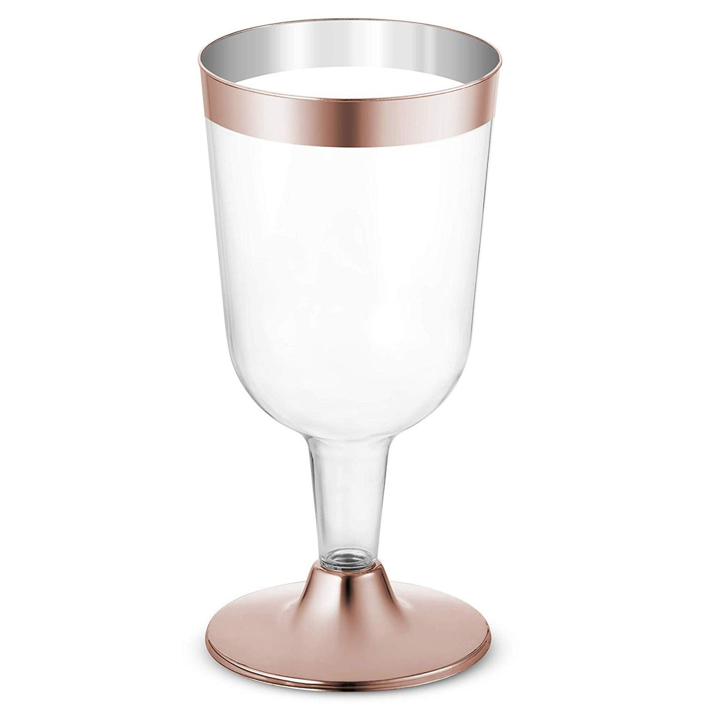50-Pack Rose Gold Rimmed Disposable Wine Glasses | 7 oz. Premium Clear Hard Plastic Fancy Wine Cups (50-Pack) by Bloomingoods