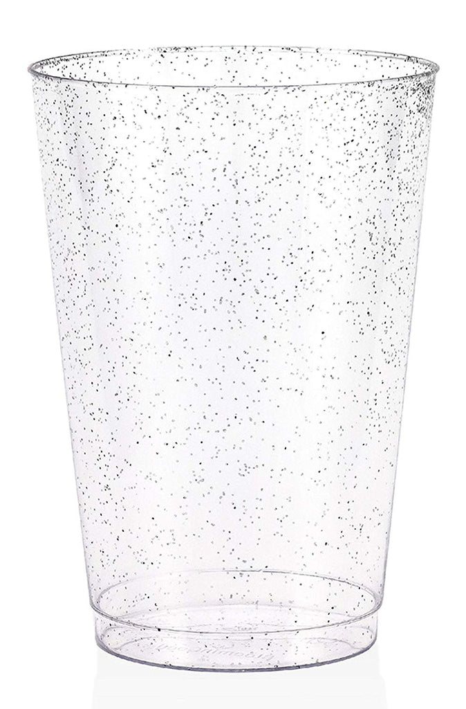 50 Silver Glitter Clear Hard Plastic Cups | 16 oz. Fancy Disposable Wedding Tumblers for Party & Wedding (50-Pack)