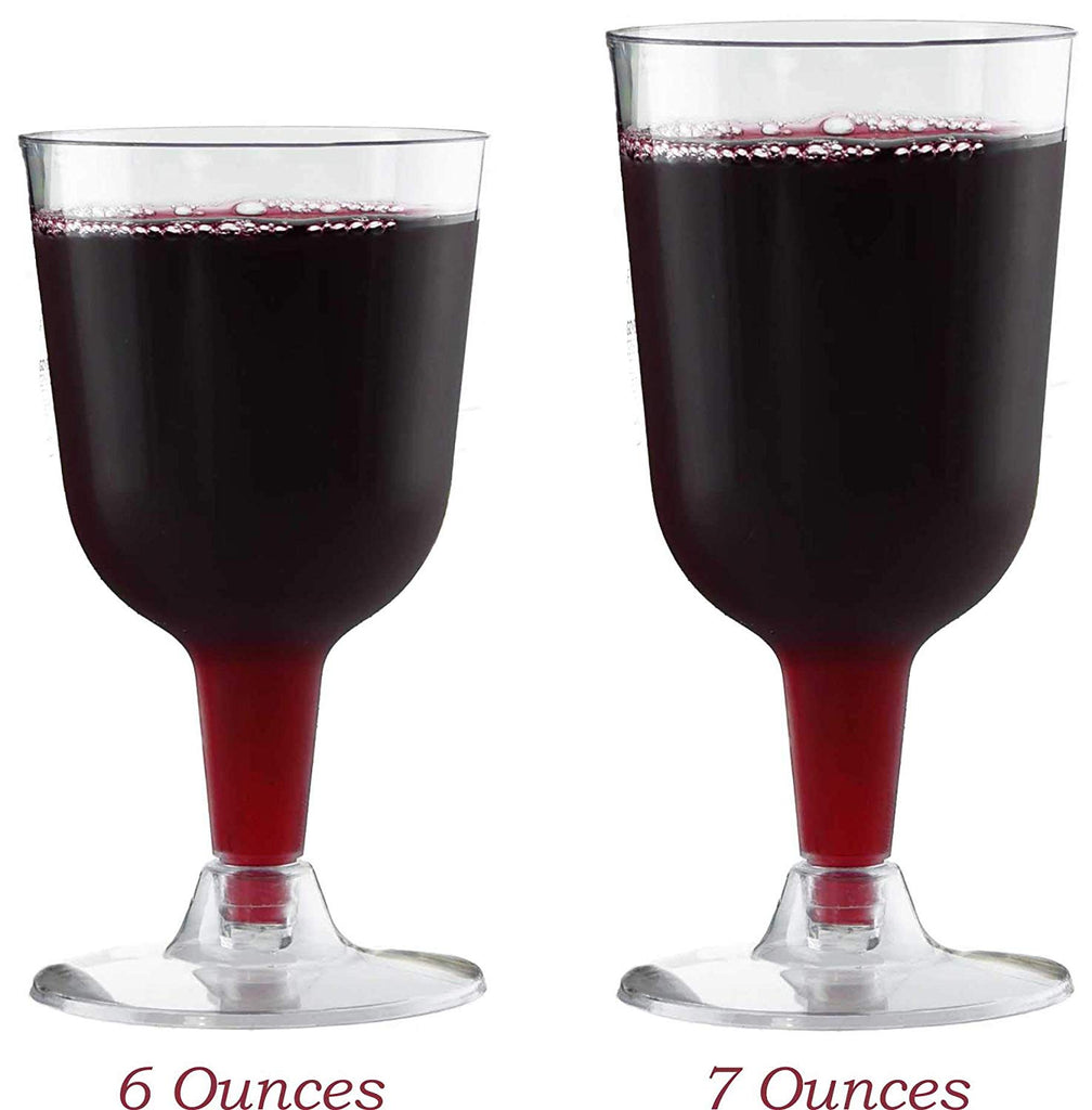 • PERFECT SIZE. Furnishing a 7.5-ounce capacity, this cup is great for serving a variety of whites, reds and rosés at your next party. They’re easy to hold in your hand, combining the ideal size for wine beverages and the perfect amount of elegance to upgrade any event.