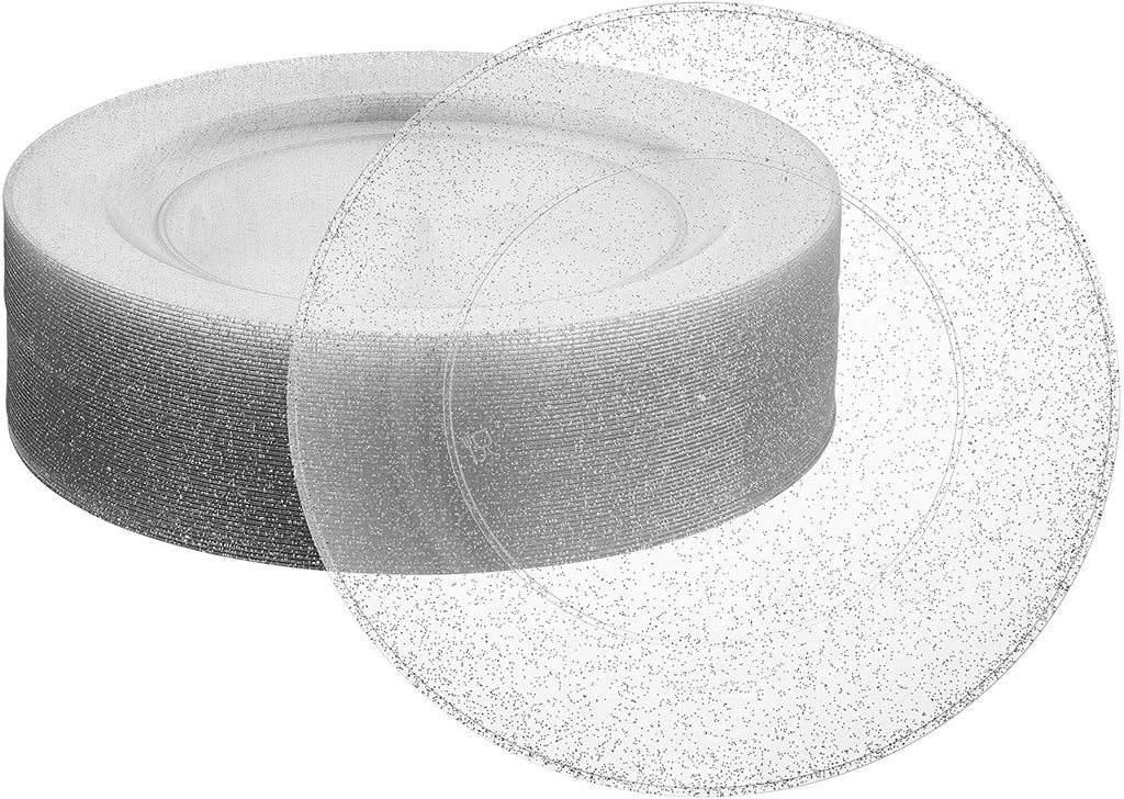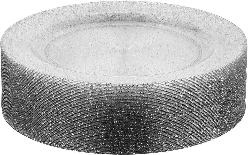 BloominGoods - Disposable Plastic plates, Clear with SILVER Glitter - 10.25" Dinner Plates (50-pack) STURDY & DURABLE: Crafted from heavier plastic, plastic plates can hold large portions of food ...